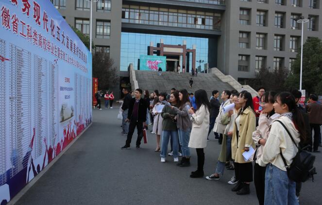 1经校学工部就业指导中心的精心谋划,此次就业市场呈现了三个特点:一是参会单位规模大、层次高,本次就业市场涉及制造、建筑、信息传输、软件技术服务、电气自动化、交通运输和仓储、商业服务、房地产、食品饮料等众多领域。参会单位包括中国建筑集团、中国铁路工程集团、中国能源建设集团、铜陵有色、太平洋建设、江西铜业、安徽海螺、苏宁易购、青山控股等世界500强及其分子公司以及中国冶金科工、中国中煤能源、淮北矿业、安徽江淮、新奥能源、山东钢铁等中国500强及其分子公司,同时还有长期校企合作单位,中天钢铁集团、江苏常宝钢管、东铭实业集团、皖北煤电、上海钢之家、卧龙电气驱动集团、牧原食品股份等国内上市公司和知名企业。二是周密谋划,提前对接,供需岗位匹配度更加精准。充分利用“校企合作、产教融合”平台,积极拓展就业渠道和市场,结合学校毕业生专业及就业意愿的分析,认真筛选招聘企业,提前发布需求信息,提升现场双向选择的精准度。三是简化流程,高质量高标准做好服务。所有参会单位都是通过企事业单位校招服务平台报名,报到手续通过平台扫码即可,同时配备专门校园招聘大使,对单位实行一对一服务,提前做好展位、引导、面试预约等细节安排,为企业创造良好的招聘环境。