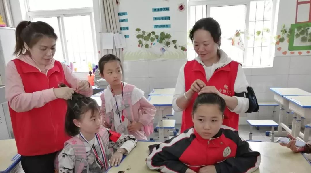 活动中,志愿者与孩子们组成临时家庭,“代理父母”们陪孩子们做亲子游戏,为孩子们洗头、理发、扎辫子,教育孩子们养成良好的卫生习惯。志愿者在教室为孩子们上一堂儿童安全防护教育课,普及交通安全、消防安全以及防触电、溺水等方面的安全小常识,让大家在寓教于乐中掌握了许多安全自救小常识。志愿者还向留守儿童赠送了精美的书包、跳绳,水杯等礼物,鼓励孩子们努力学习、健康成长。