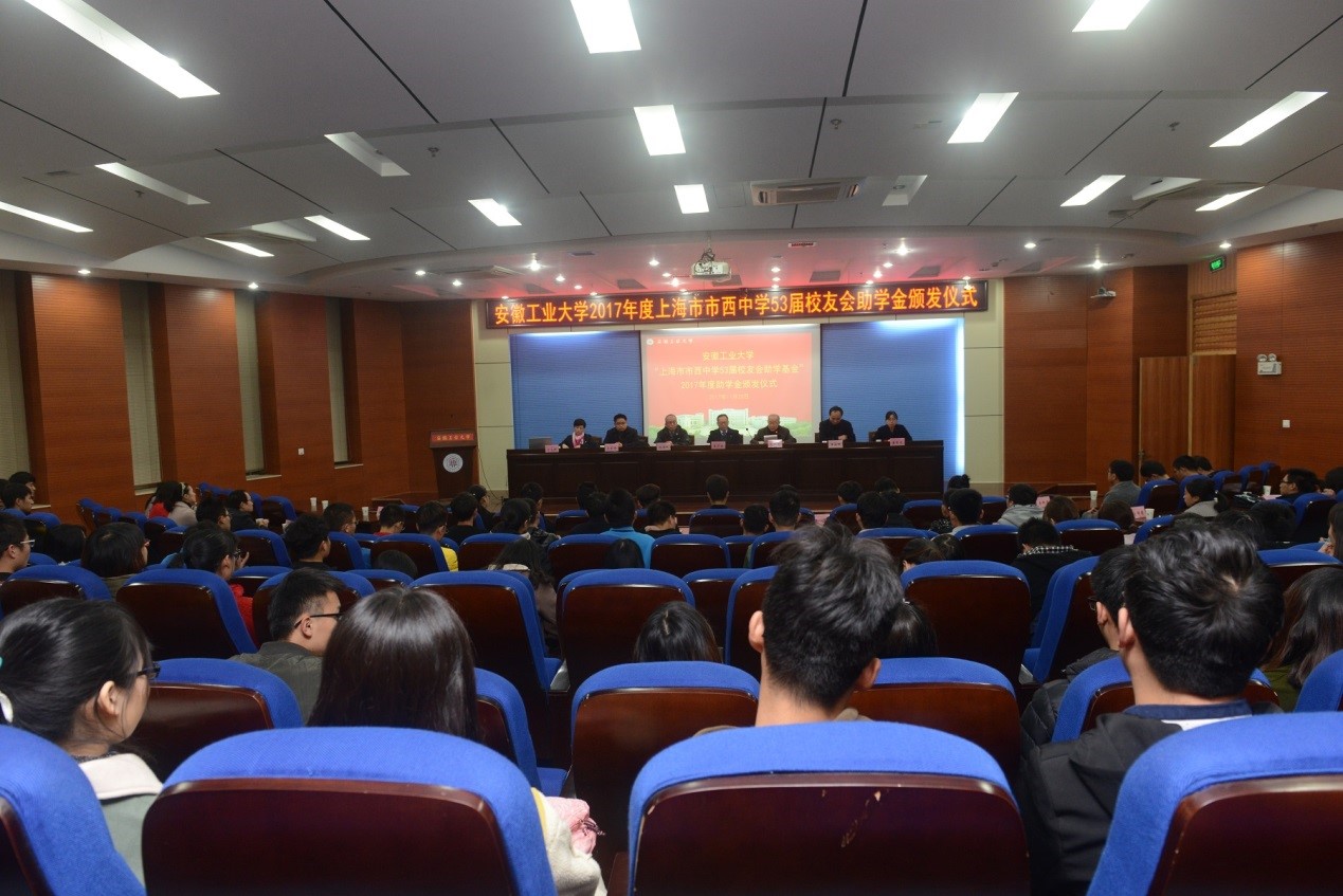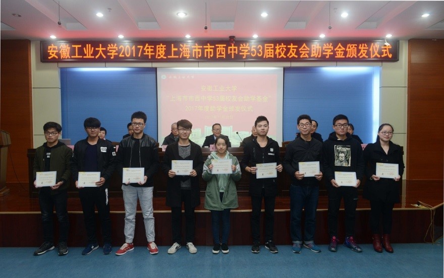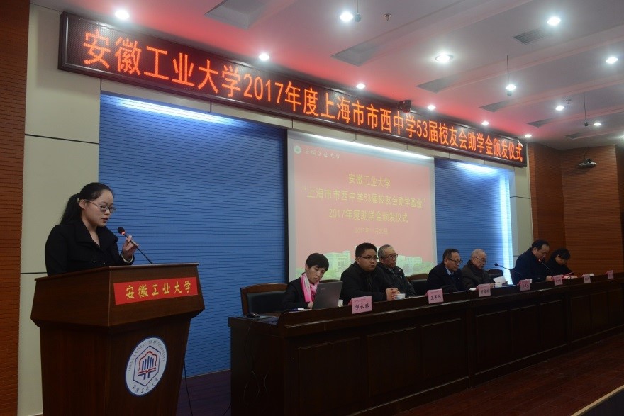 校友工作处(教育发展基金会秘书处)处长单桂锋主持会议,并宣读了关于颁发“市西53”2017年度助学金的决定和关于成立“安工大•市西53•2017”01、02班的决定。建筑工程学院2015级曹燕飞同学、冶金工程学院2016级高丽同学先后发言。(撰稿:宁永球 审核:单桂锋)