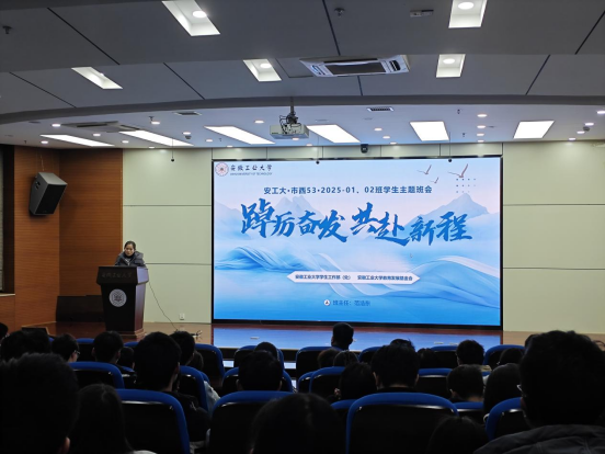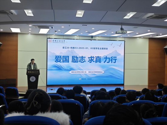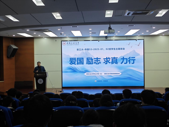 班会上,范浩东以“爱国 励志 求真 力行”为主题,对学生进行勉励与分享。强调爱国是大学生立身的根本立场,大学生当厚植家国情怀,树立理想,将个人梦融入中国梦中;谈及励志,他用庞众望的励志事迹,让学生汲取力量,激励学生立鸿鹄志,做奋斗者;在求真层面,他强调大家要珍惜大学时光,以孜孜不倦的态度探求真理、锤炼真本领;聚焦于力行,号召大家知行合一,做实干家,最后用李四光的名言“用创造的精神和科学的方法,求人生的出路”勉励大家以科学态度和创新精神开拓未来。